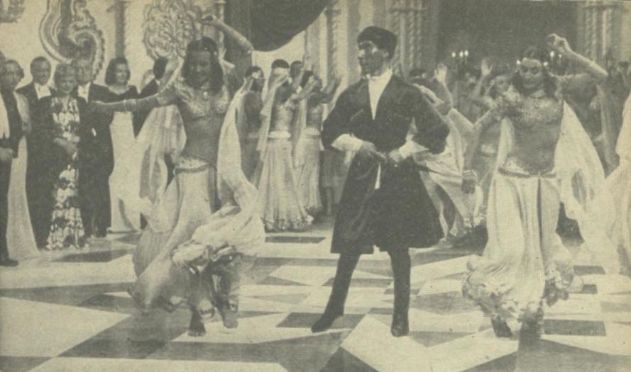 Tanzszene aus "Anschlag auf Baku". Der Tänzer in der Mitte ist wahrscheinlich Hacınski. Quelle: Das Kleine Magazin, Jg. 17/H. 47, 1941, S. 27.